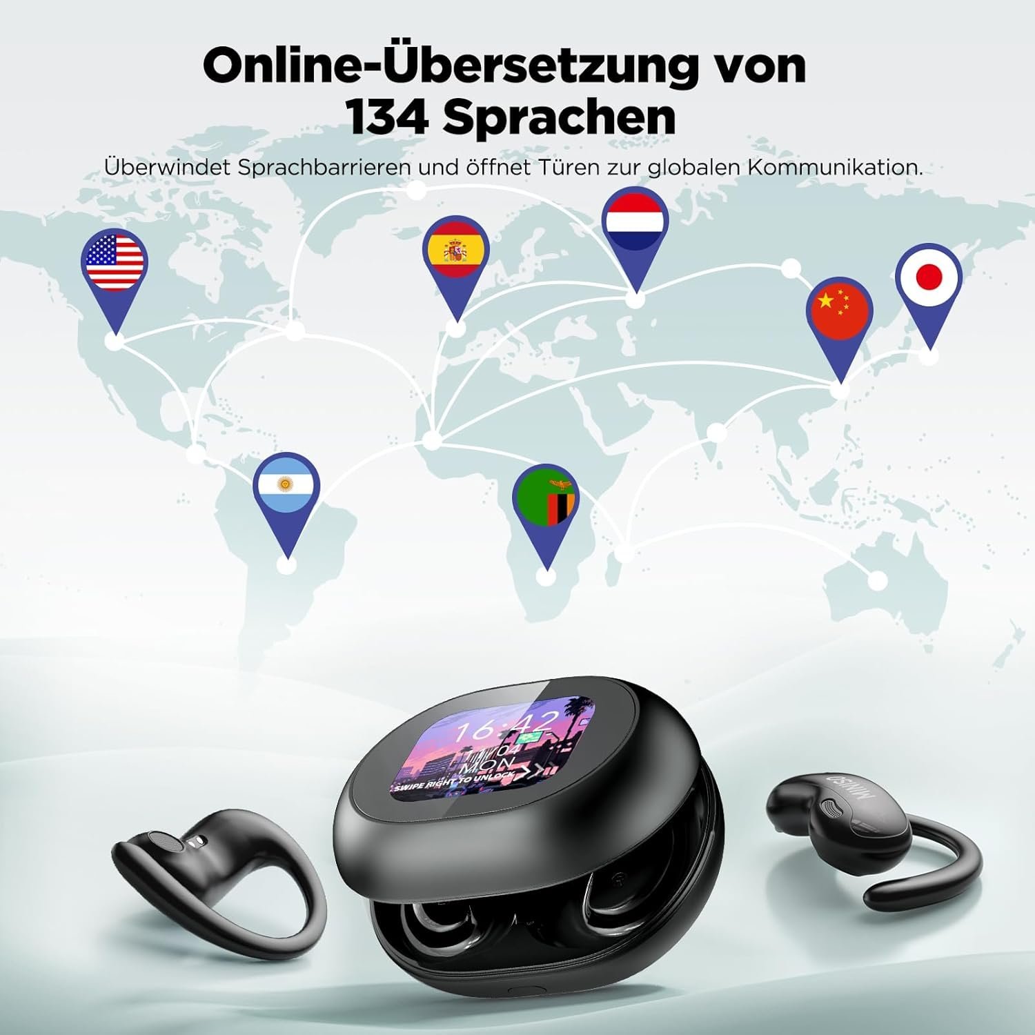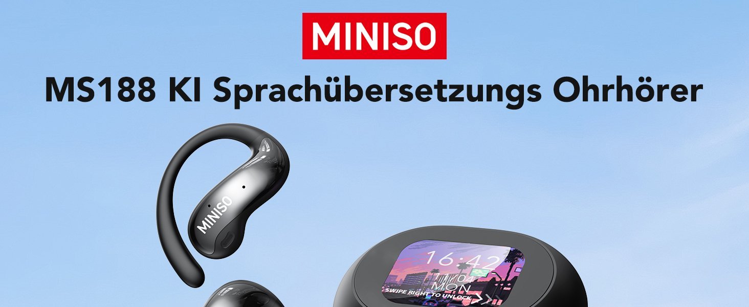 30 reviews for MINISO MS188 AI Bluetooth-Headset mit Echtzeit-Übersetzungsunterstützung für 136 Sprachen, kostenlose App, Vollfarb-Touchscreen, zwei Mikrofone mit Geräuschunterdrückung, 60 Stunden Akkulaufzeit, IPX5-Einstufung, geeignet für Training, Reisen und Laufen