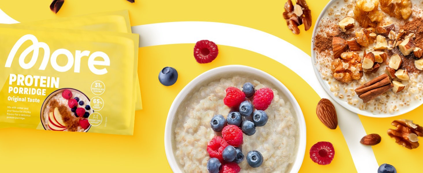 Ingredients:MILK Protein Concentrate 55%, Whole Wheat OATS (gluten free) 39%, Glucomannan (from Konjac Root) 2%, Psyllium Husk Powder, Soluble Fibre (Maize), Salt, Lactase, Sweetener (Steviol Glycosides from Stevia). Origin of ingredients: EU/Non-EU.